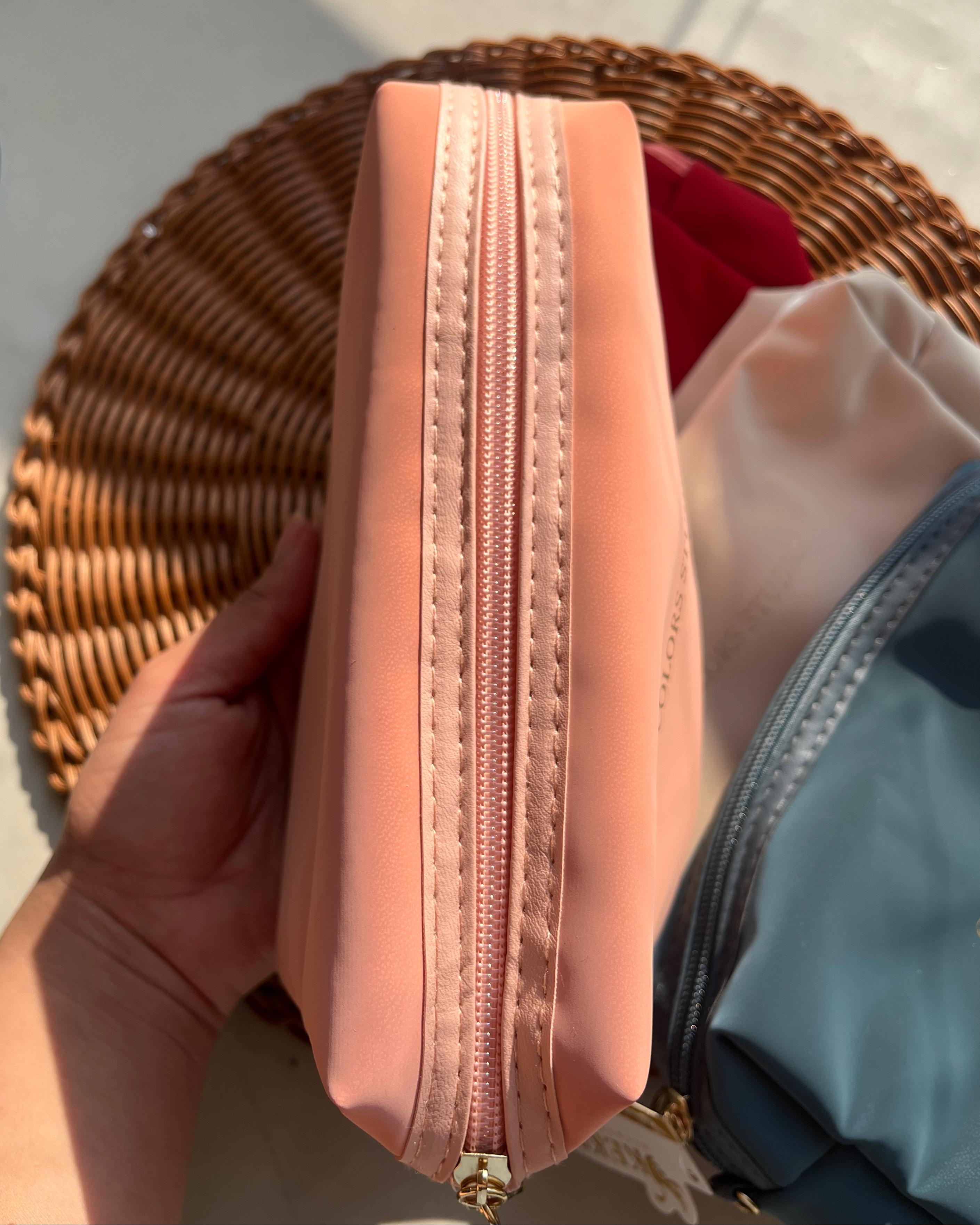 Cierre seguro y espacio ideal para maquillaje, skincare o accesorios