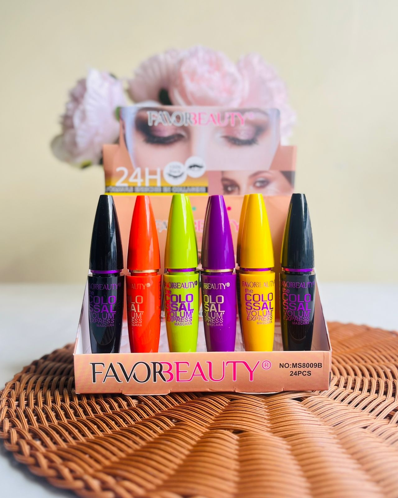Logra una mirada intensa y duradera con la Máscara de Pestañas 24 horas de Favorbeauty. Su fórmula resistente y de alta fijación mantiene tus pestañas levantadas, definidas y sin grumos durante todo el día.