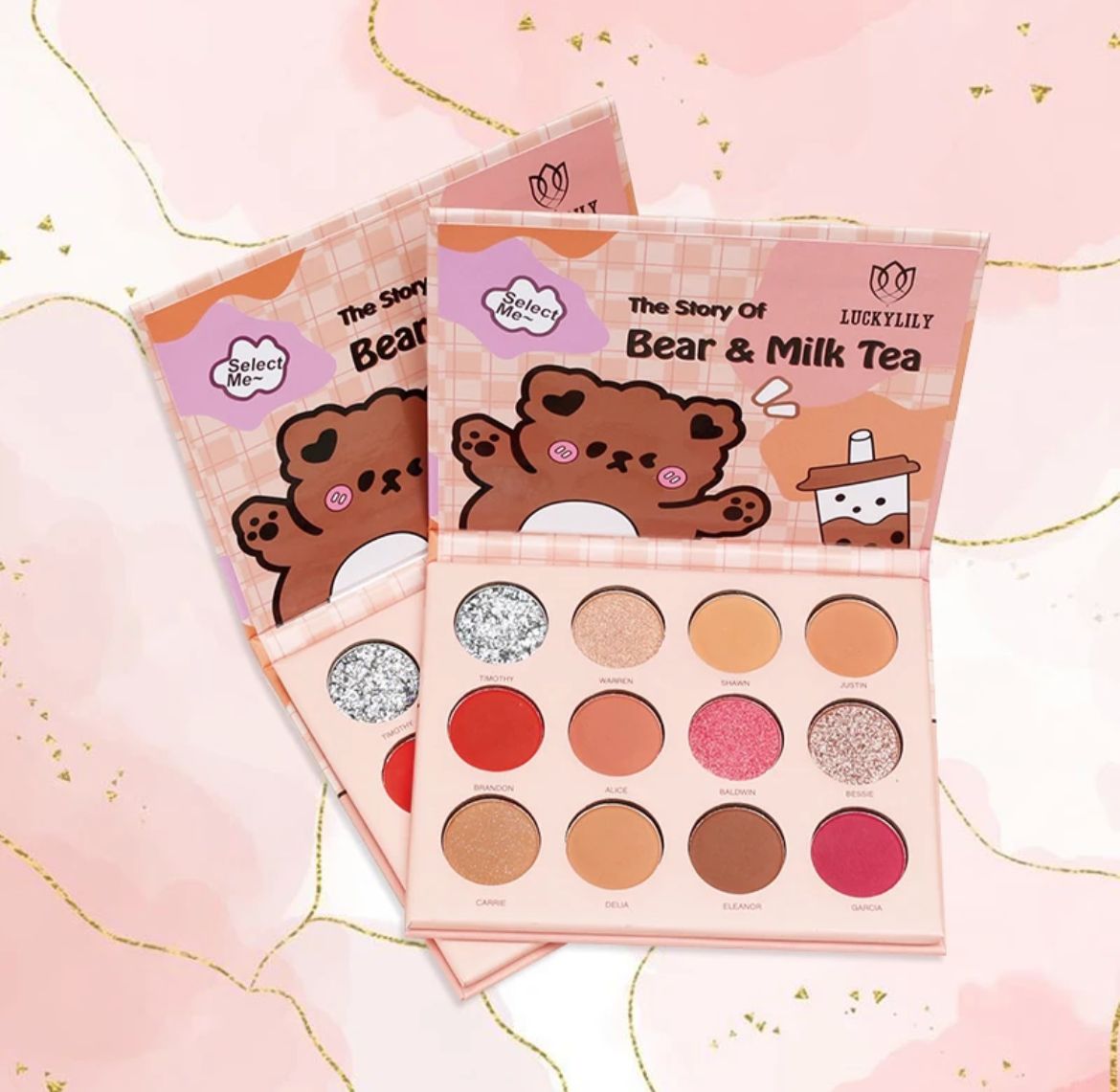 La Paleta de Sombras Bear and Milk Tea de LuckyLily es una colección encantadora que combina tonos suaves y vibrantes para crear looks versátiles y llamativos. Con una selección de 12 sombras de alta pigmentación, esta paleta incluye acabados mate, satinado y brillante, perfectos para cualquier ocasión. Desde looks naturales de día hasta estilos más audaces para la noche, los tonos inspirados en el té con leche y la dulzura de los ositos te permitirán jugar y experimentar con tu creatividad. Su textura suave y fácil de difuminar asegura una aplicación sin esfuerzo, mientras que su diseño compacto la hace ideal para llevar a cualquier lugar. ¡Haz que tus ojos se destaquen con la Paleta Bear and Milk Tea y da rienda