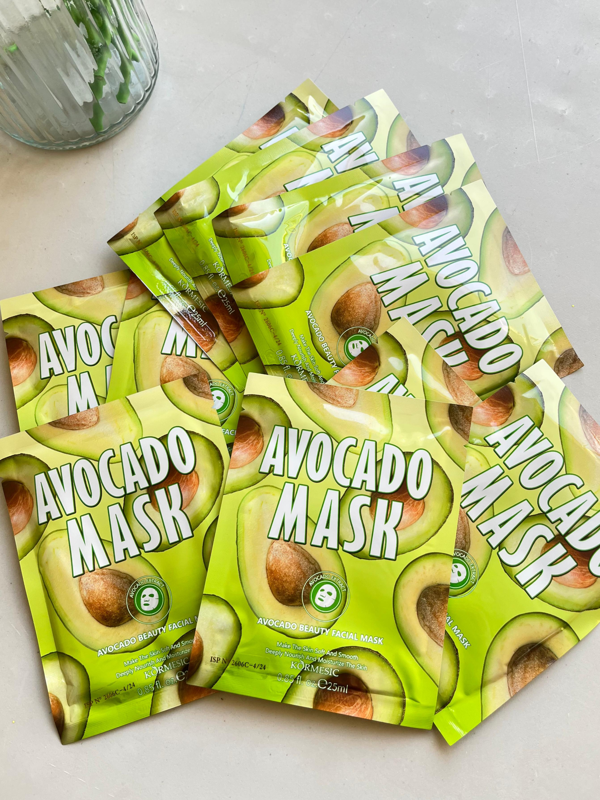 Dale a tu piel un cuidado intensivo con el pack de 10 mascarillas faciales de palta Kormesic, perfectas para reventa o para quienes buscan hidratación profunda 🥑.