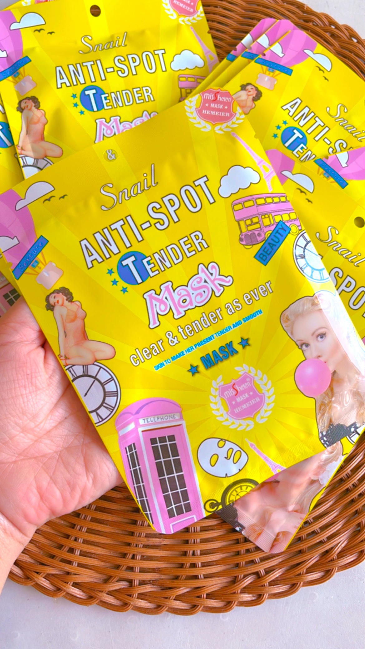 Pack de 10 Mascarillas Faciales Snail Anti-Spot Miss Helen
